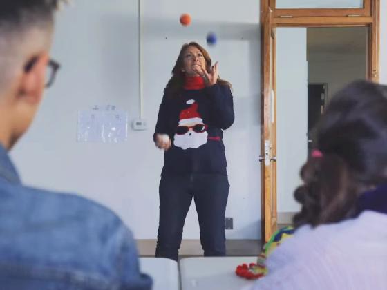 At 1:02:22, during auditions for a Christmas show, Christy Edwards