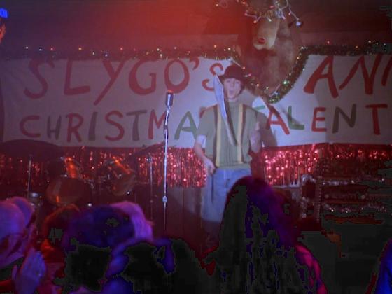 At 19:56, Damian Gryski, playing Juggling Dave, juggles 3 machetes in