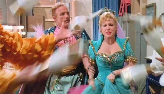 At 1:02:24, as James Caan and Bette Midler are walking backstage at a TV show, the camera backs up, and clubs start passing across in front of them. The clubs are dropped immediately and James Caan disgustedly kicks one away and says to one of the jugglers, "What, you can't see?"