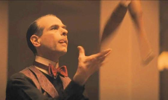 At 45:29, we see a juggler on stage finish his act by juggling 3 wooden